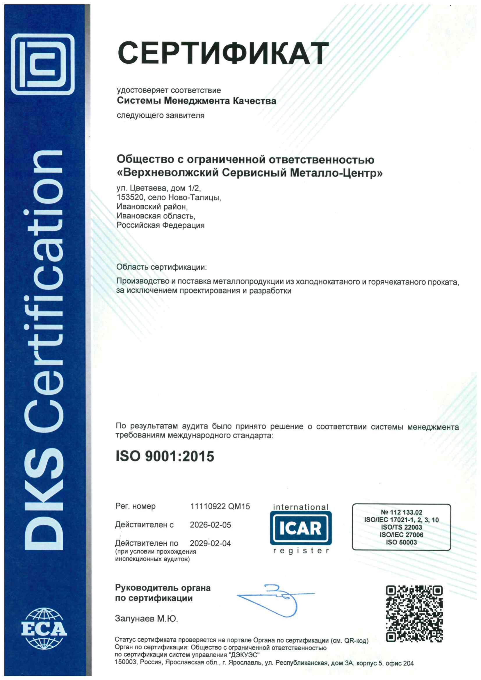 Сертификат DQS ISO 9001-2015